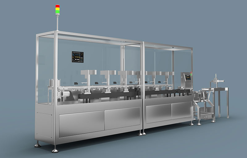 应用行业:通用管装药的装袋;Up to six types of cryovials can be fully automated for bagging, accommodating 4-6 different cryovial materials. The process includes automatic bag retrieval, opening, loading 4-6 types of cryovials, automatic sealing, automatic weighing, and automatic removal